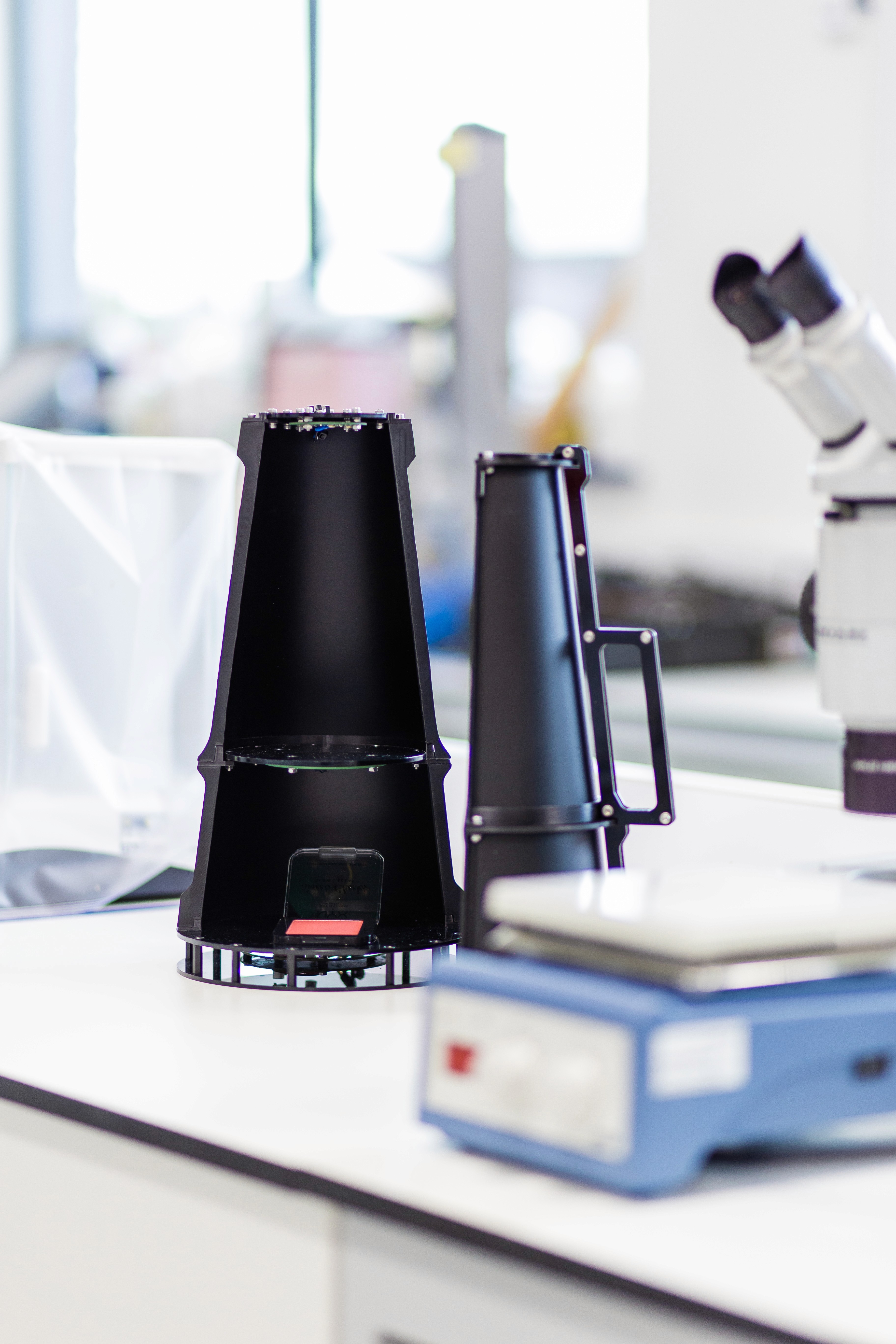 We tested LUMI’s effectiveness against microbes on makeup, including E. coli and Staphylococcus aureus, as required by the WHO for UV disinfection. Violet UV-C reduced viability within 2–10 minutes, with 10 minutes eliminating all colonies.